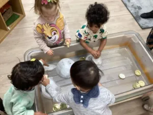 Children at our Kiddi Caru Great Park Road in Bradley Stoke nursery regularly engage in activities which are centred around developing their communication skills. In Summer 2024 the children participated in a group ice play activity where they explored different textures, temperatures, and descriptive language. Activities like this ultimately help enhance a child’s motor skills, use of touch, vocabulary and promotes social interaction which they can use in other settings for example in primary school and onwards.