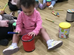 These experiences often lead naturally into imaginative play, as children move, explore and experiment with sound. Whether they are clapping, dancing or using their voice in different ways, children are building confidence, learning how to express themselves and strengthening the communication skills that support their wider development.