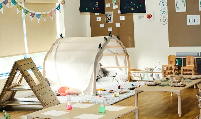 The play areas are vibrant and flexible, offering plenty of opportunities for imaginative play and group activities. We have dedicated zones for construction, role-playing, and quiet reflection, catering to all aspects of a child’s development.