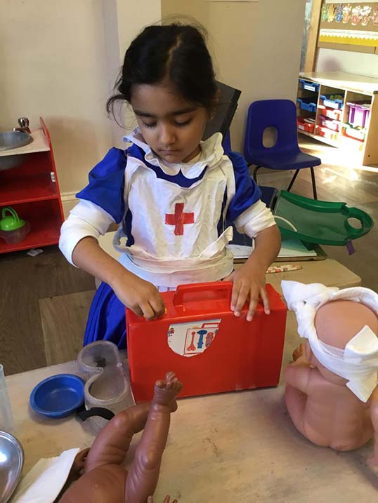 We have a newly refurbished garden and are fortunate to have direct access to the local cricket pavilion nearby, which provides us with even more opportunities for physical activities and outdoor play.