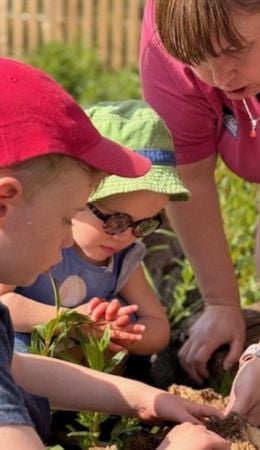 Outdoor Space: Children have access to a well-equipped outdoor area, featuring a mud kitchen, mud pit, and a vegetable patch for hands-on activities.
